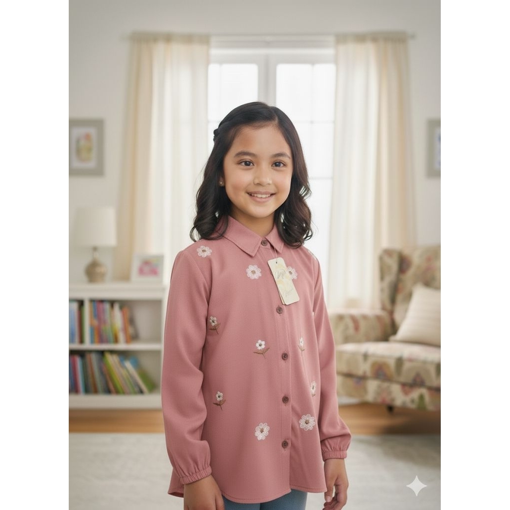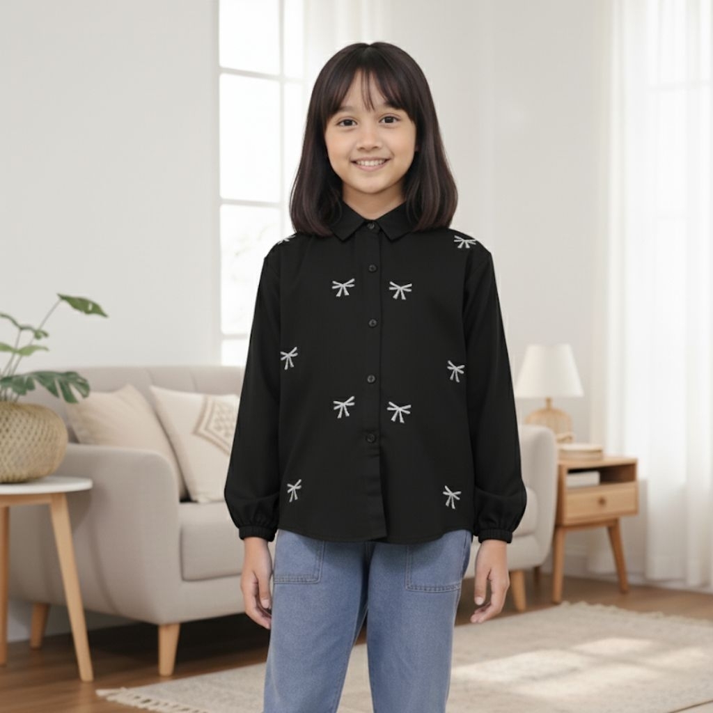 Baju Anak Perempuan / Atasan Anak Kemeja Anak / Bordir Motif Bunga Dan Pita Korean Style Bahan Rayon Twill Premium