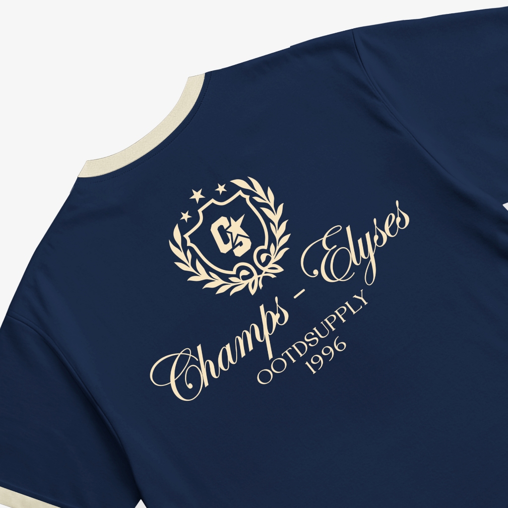 Ootdsupply Oversized Boxy Elyses Navy Ringer Line Cream | Oversize Pria & Wanita | Kaos Unisex | Os-Ovz-Bx-Rl006