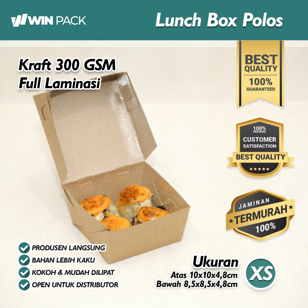 Isi 50 Pcs Lunch Box Kraft Paper XS Polos Kraft 310 GSM Lapis PE | Dus Somay Dimsum | Tahan Minyak Murah Gratis Ongkir