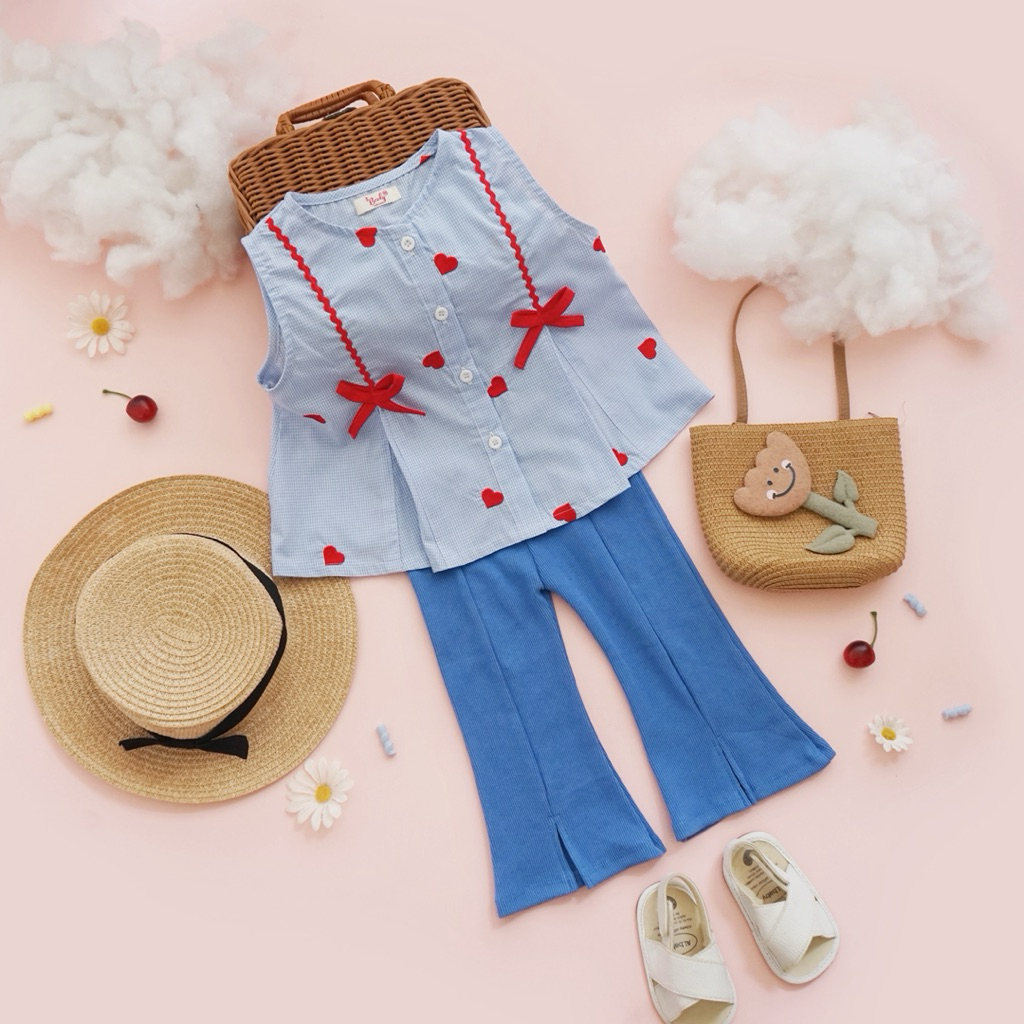 Alice Ribbon Blouse Atasan Anak Perempuan Katun Bordir