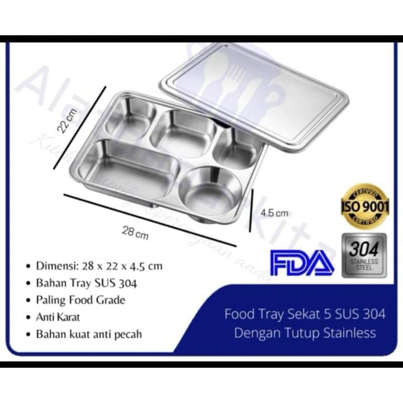FOOD TRAY OMPRENG STAINLESS 304 SEKAT 5 KOTAK MAKAN STAINLESS Murah Gratis Ongkir