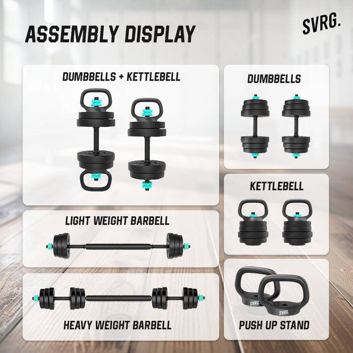 Svarga Adjustable Barbell 6 in 1 - Dumbbell - Kettlebell - Barbel 10kg - 6in1 10KG