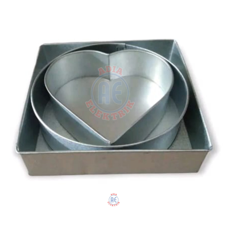 1 Set 3 Pcs Loyang Kue Bentuk Kotak ,Bulat Dan Love Tinggi 4 Cm Ukuran 16 15b 13 cm Murah Gratis Ongkir