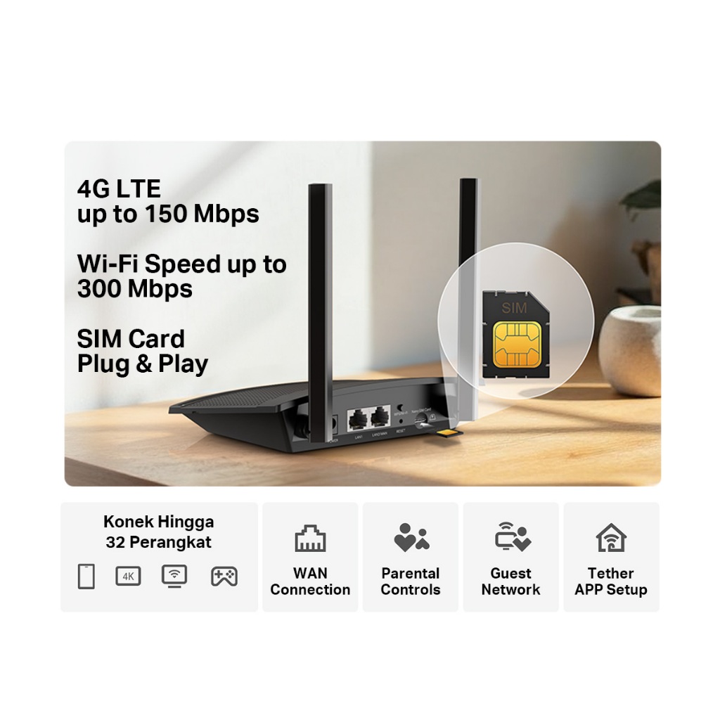 TP-Link TL-MR101 Router I 4G LTE I 300 Mbps Wireless N I dengan 32 Koneksi I Internet Stabil di Mana Saja