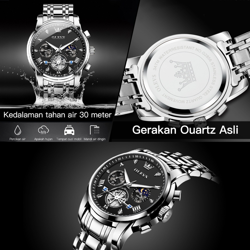 Olevs Jam Tangan Pria Anti Air Original Keren Terbaru Luxury Chronograph Stainless Steel Watch Men