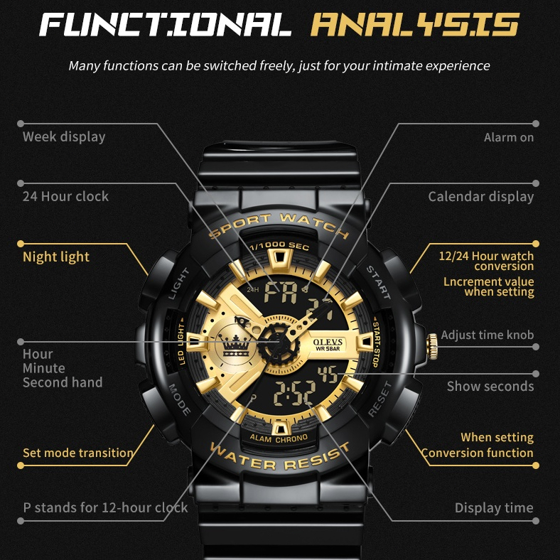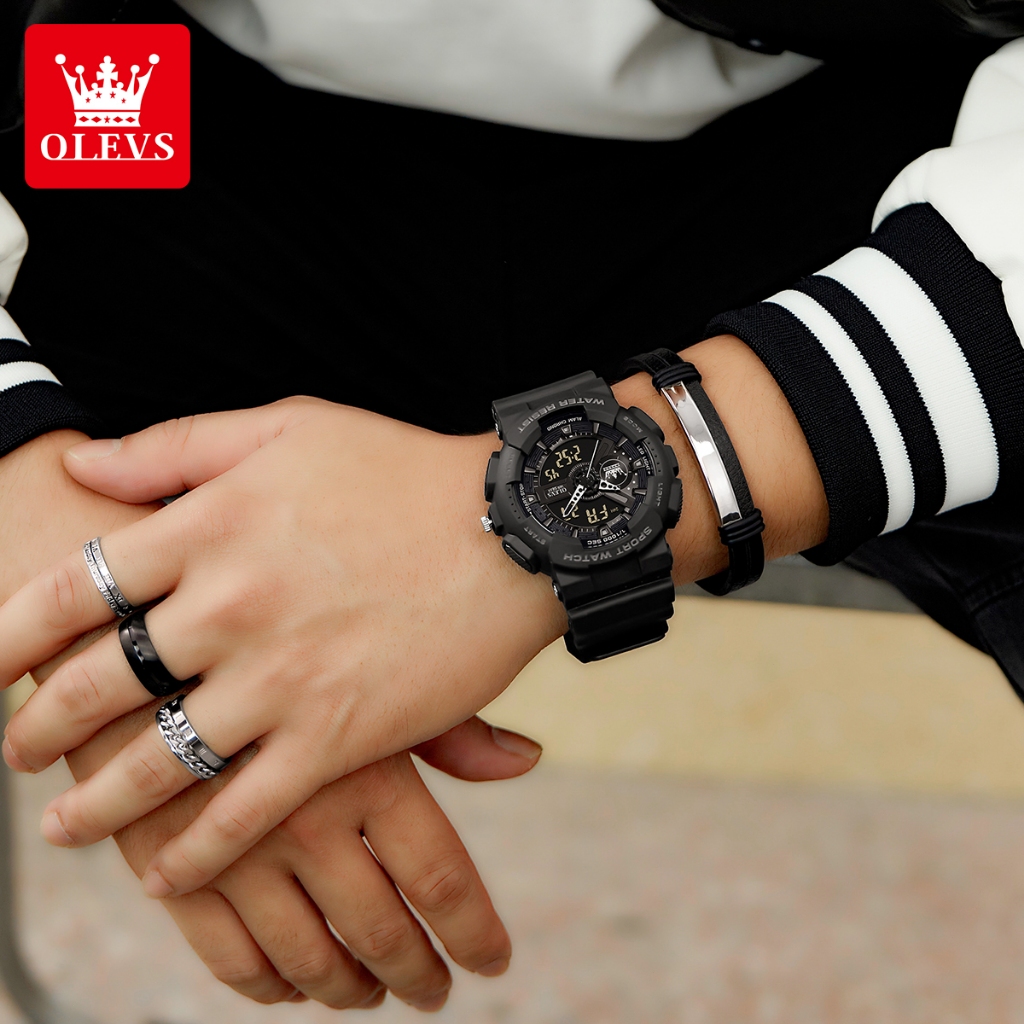 Olevs Jam Tangan Pria Anti Air Original Mewah Tali Silikon Anti Karat Luxury Multifungsi Bercahaya Quartz Watch Men 1102