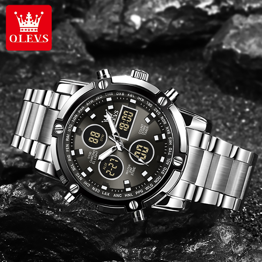 Olevs Jam Tangan Pria Anti Air Original Multifungsi Luminous Kalender Alarm Analog Cowok Fashion Hitam Men Watch Model