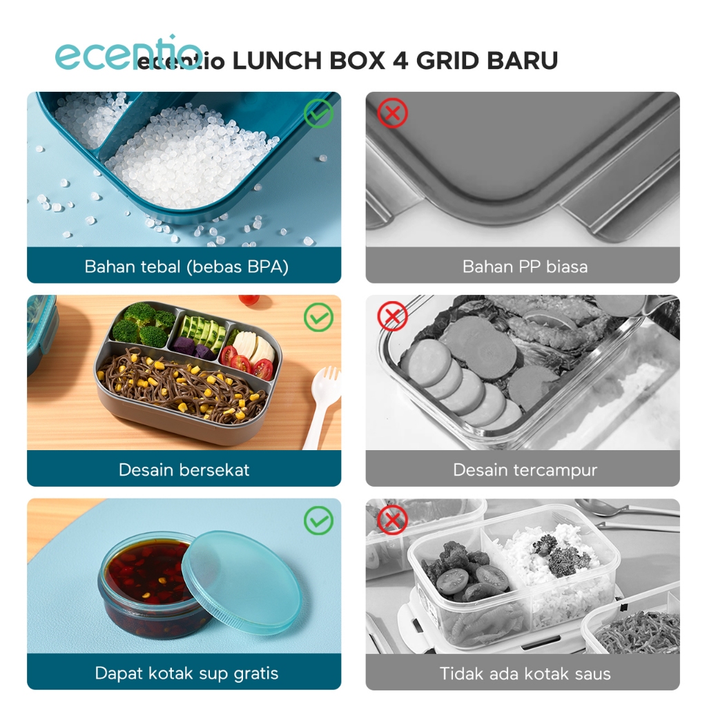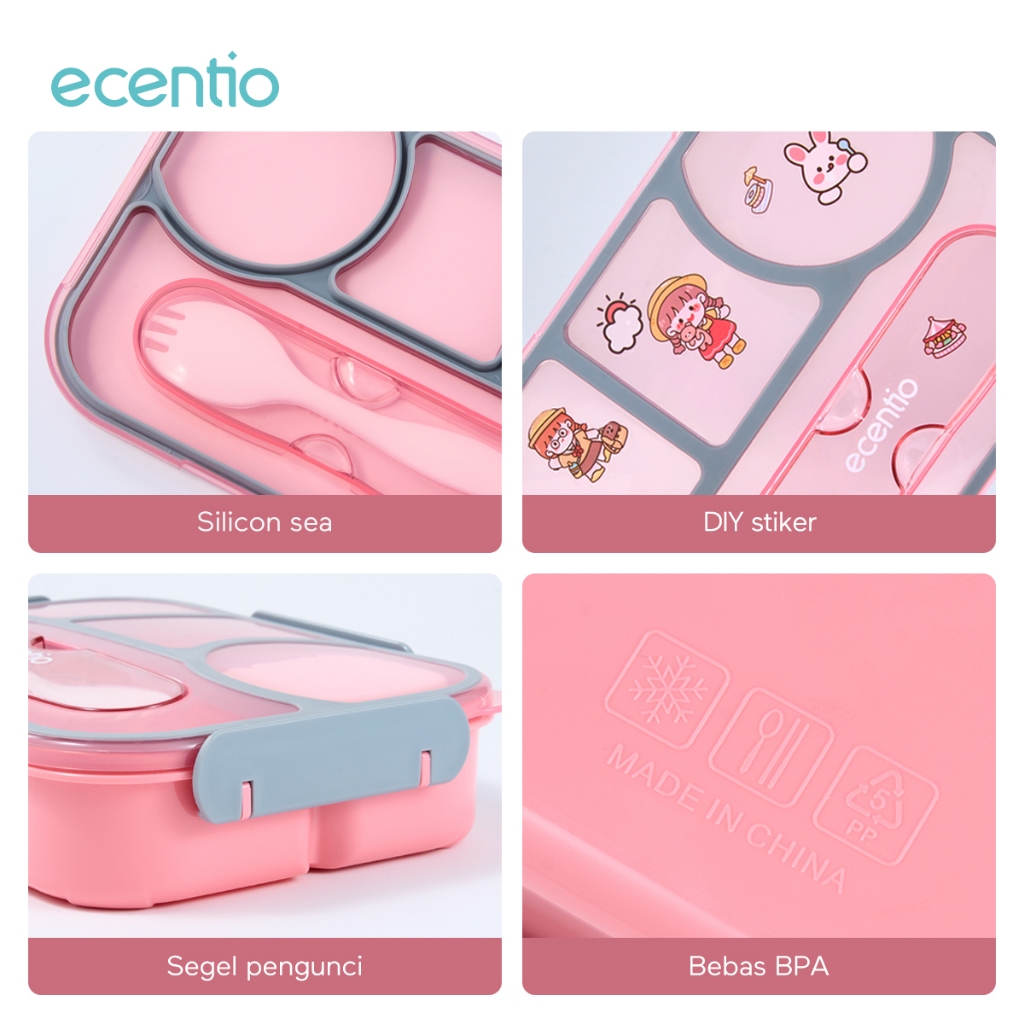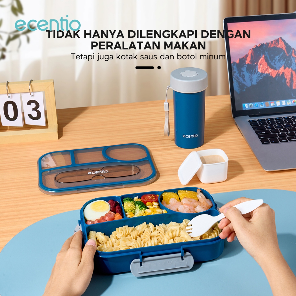 [Set | box+ botol+tas] Ecentio Kotak Bekal Makan Set 1100ml sekat 4 dengan sticker BPA free lunch box set Gratis botol m