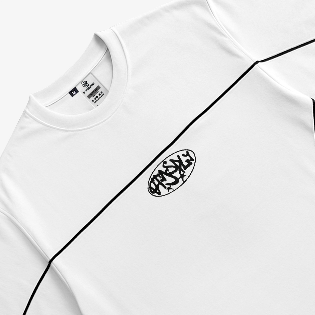 Ootdsupply Oversize Boxy Cutline Circle Embroidery Black & White L Tshirt Boxyfit L Kaos Boxy | Atasan Boxy | Ovz-Bx-Ce