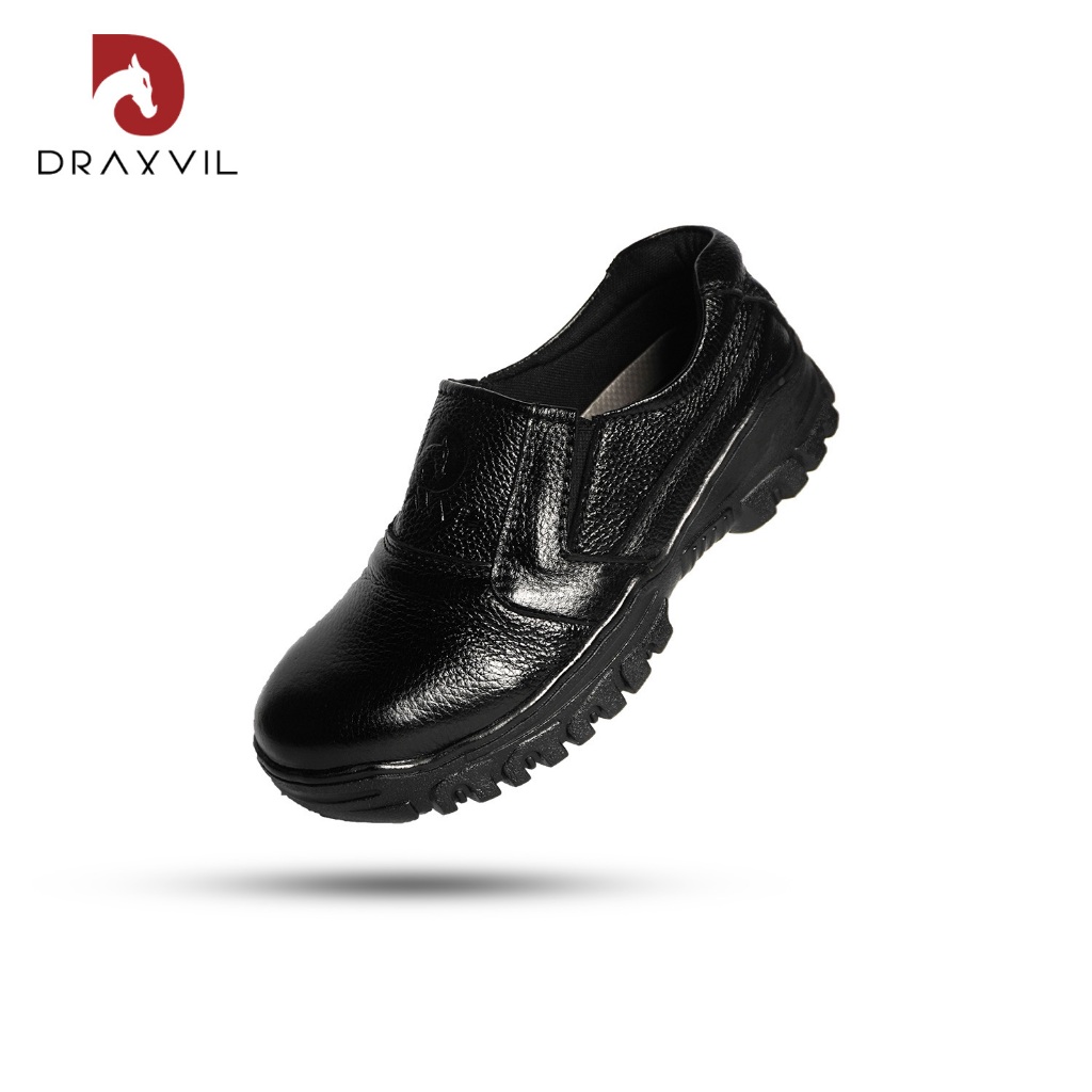 Draxvil Kulit Sapi Asli - Sepatu safety pria kulit sapi asli DRAXVIL Original, sepatu slip on