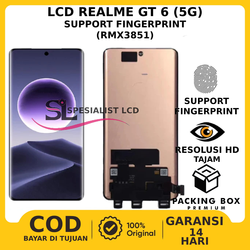 LCD TOUCHSCREEN REALME GT 6 (5G) RMX3851 ORI SUPPORT FINGERPRINT GARANSI FREE LEM
