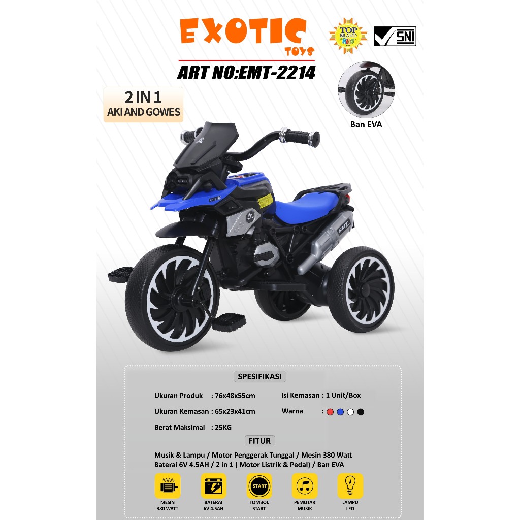 Motor Aki Gowes 2in1 EXOTIC EMT2214 EMT-2214 Kendaraan Mainan