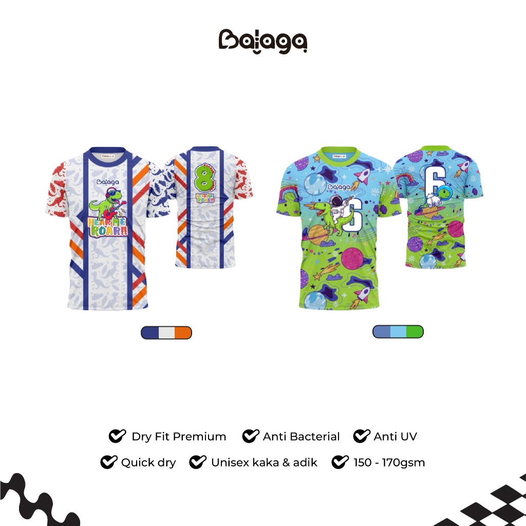 Balaga Jersey Anak Unisex Series Karakter Bahan Dryfit Premium Reguler Fit Usia 1 - 10 Tahun
