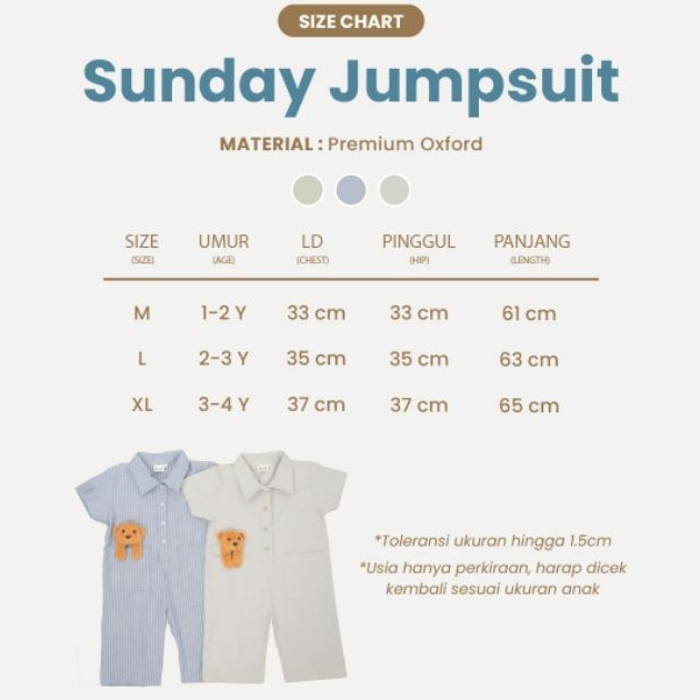 Ben N Sunny - Sunday Jumpsuit - Anak 1-6 Tahun / Overall Jumper Unisex Laki-Laki Perempuan Baju Kodok Katun