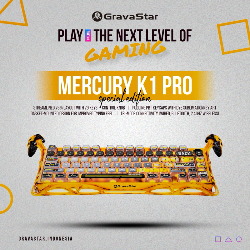 GravaStar Mercury K1 Pro Wireless Mechanical Gaming Keyboard Special Edition Battle-Worn Yellow