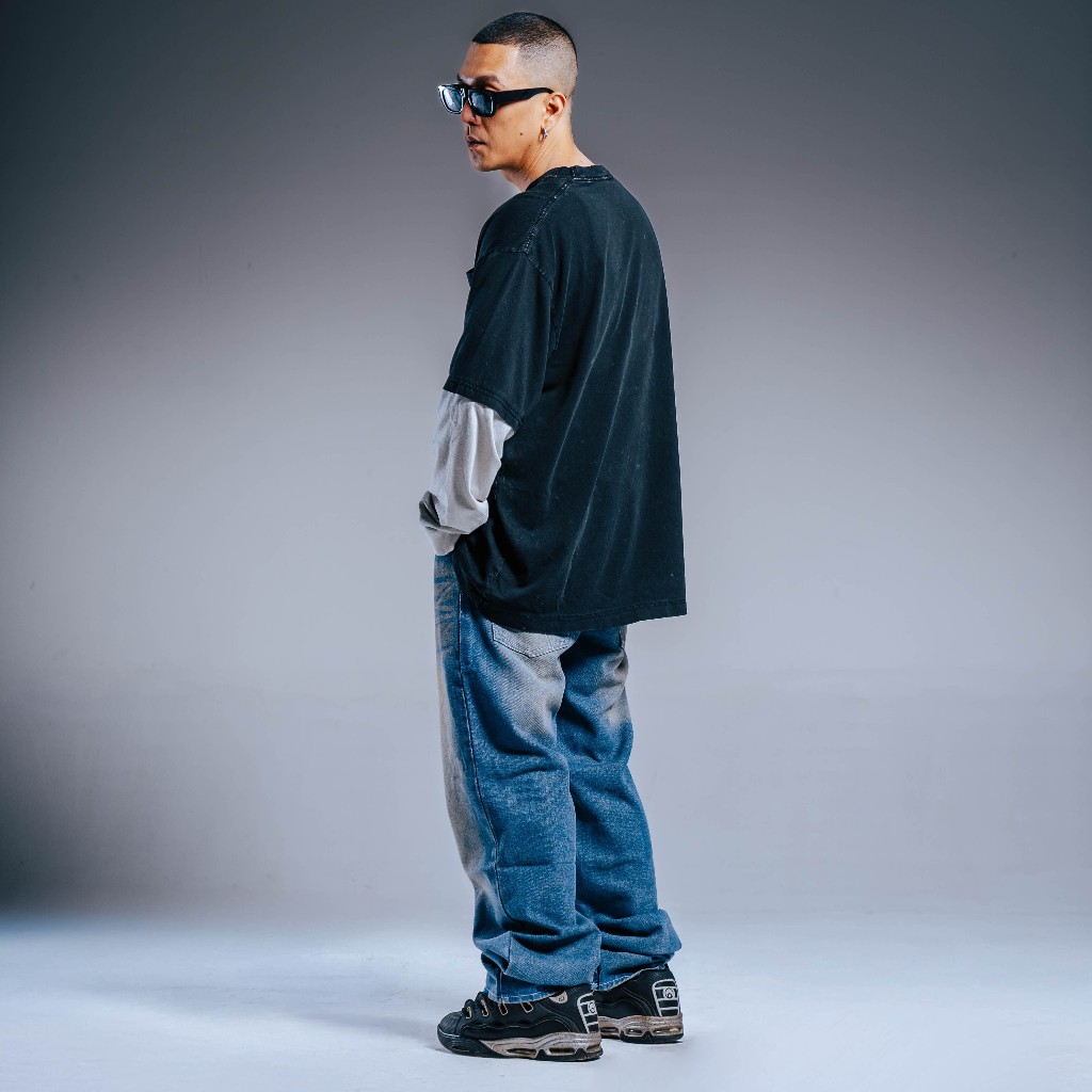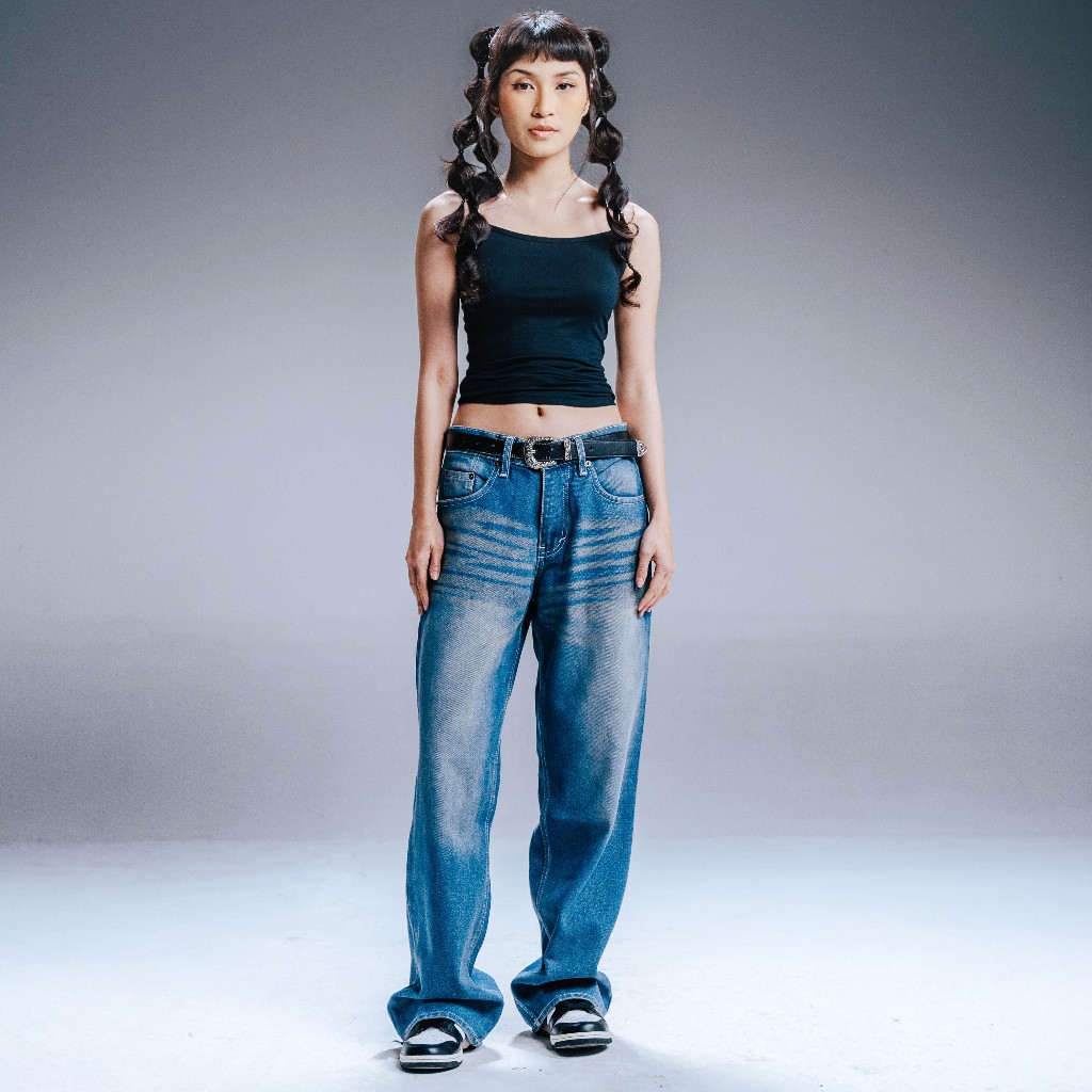 Pluviophile - Celana Jeans Wide Leg Gombrong Wisker Blue Think
