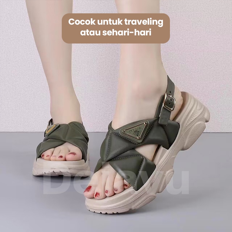 Dejavu Sepatu Sendal Tali Wanita Sandal Wedges Slop Korea Empuk Non Slip HSN129