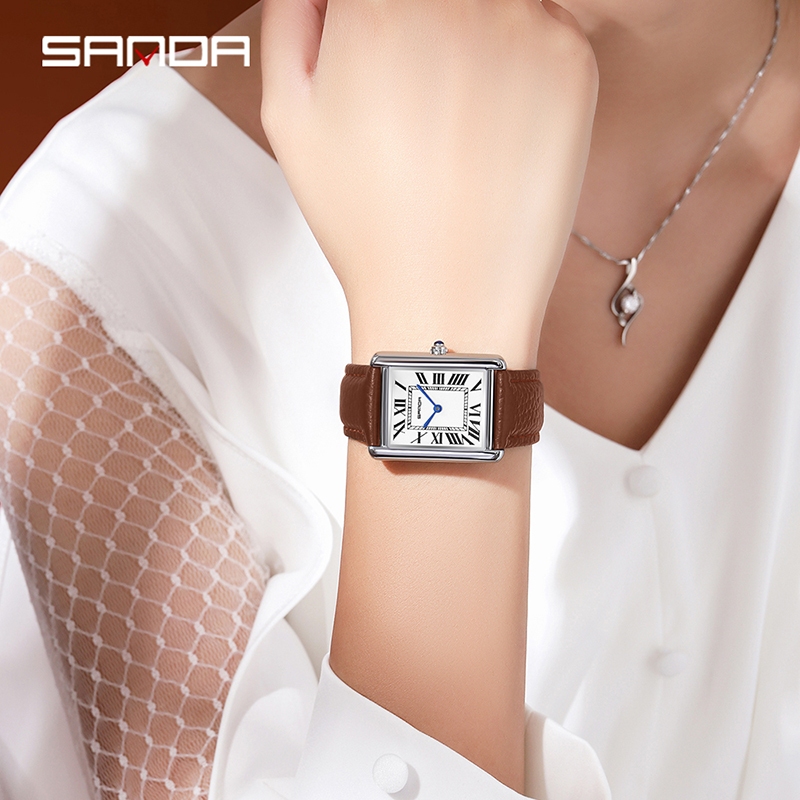 Sanda 1108 Jam Tangan Pria Wanita Analog Medium Size Retro Style Tali Kulit Quartz