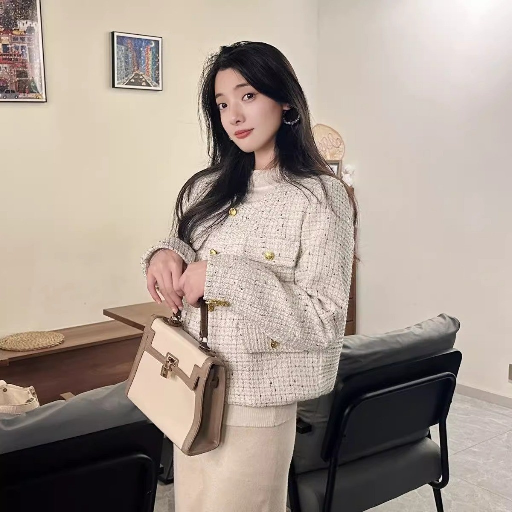 MISS EMITA Tweed er Kondangan Mewah Blazer Putih Wanita Premium er Pesta Mewah Elegan er Crop Top Lengan Panjang Korean Style