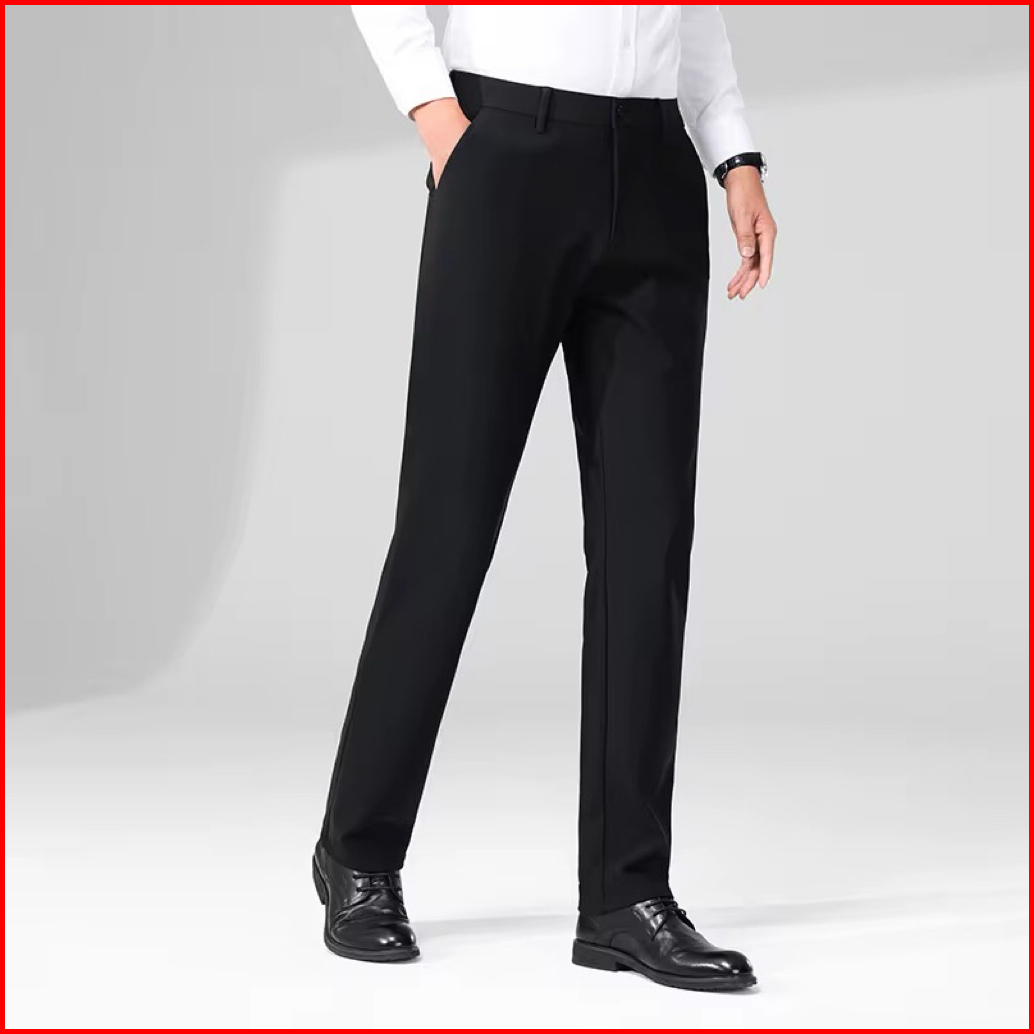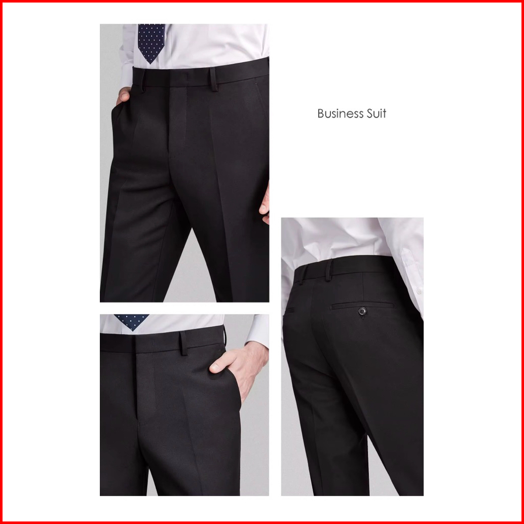 Loowes - Celana Kantor Pria Model Slim Fit Warna Hitam Bahan Semi Woll