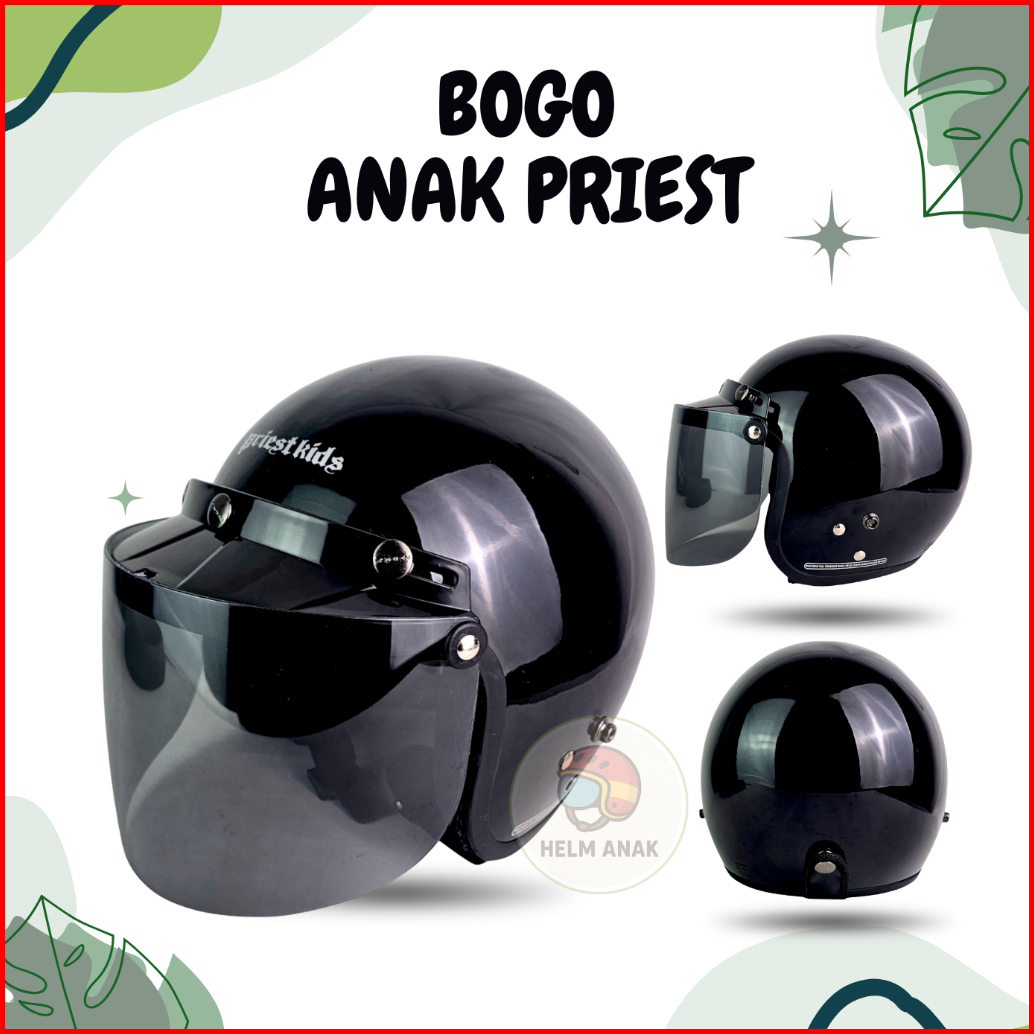 Helm Bogo Anak Usia 4 S D 9 Tahun Hitam Glossy Helm Pristkids Anak