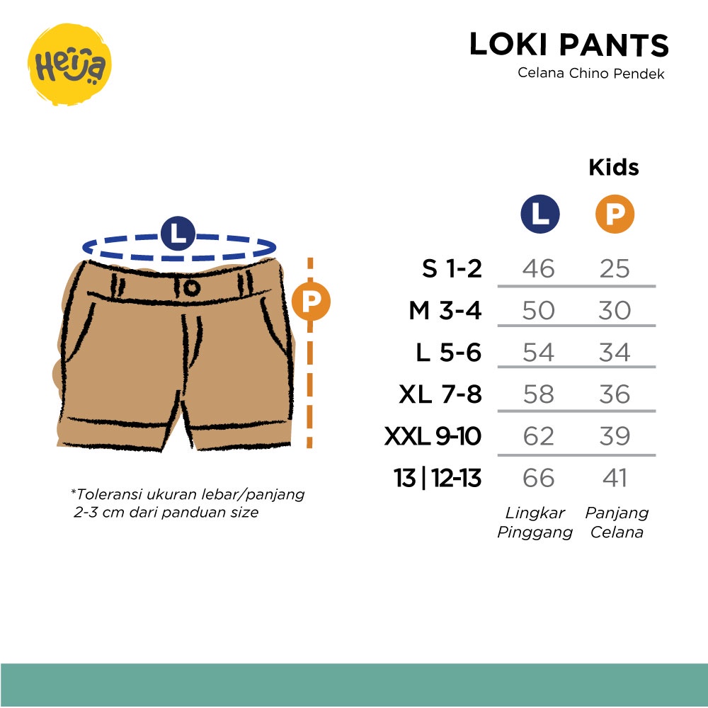 Celana Pendek Anak Chino Stretch Warna Polos 1-10 Tahun | Loki Chino Pants | Heija
