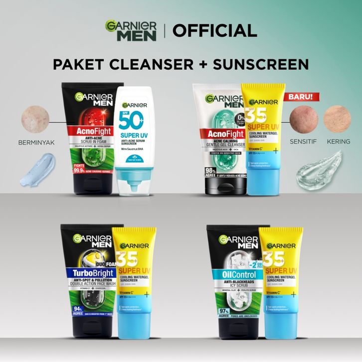 PAKET HEMAT ISI 2 GARNIER Men Value Skincare Set | Face Wash + Sunscreen SPF 50 PA ++++ | Moisturizer Serum Brightening