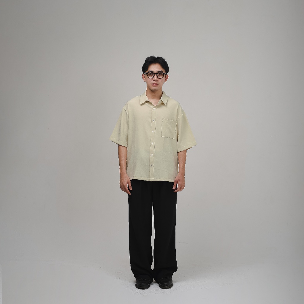 Piliana Kemeja Pria Lengan Pendek Oversize Brown Kemeja Boxy