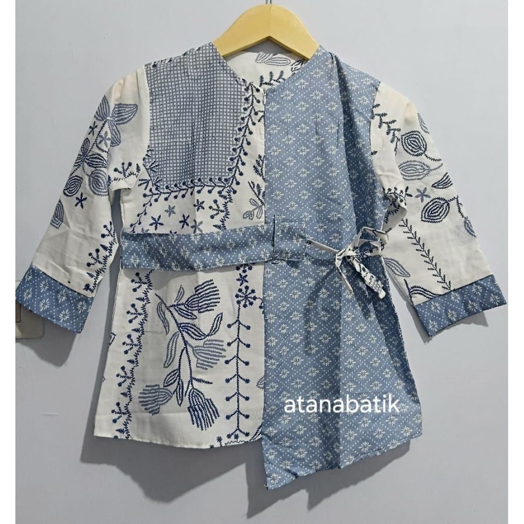 Blus Batik Anak Model Tali Samping Lengan Panjang (Biru)