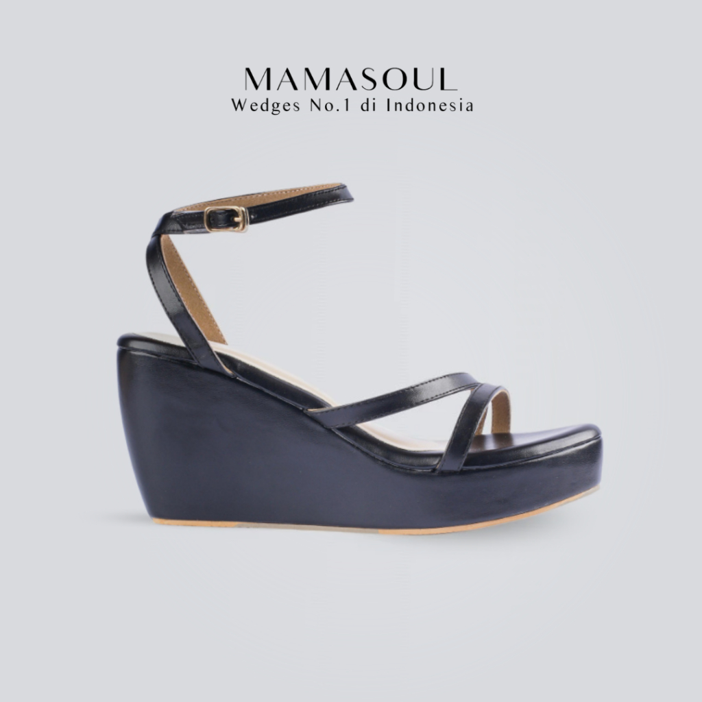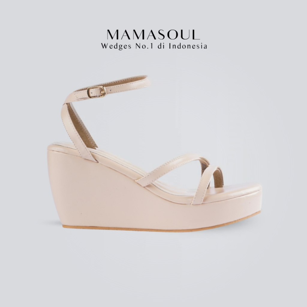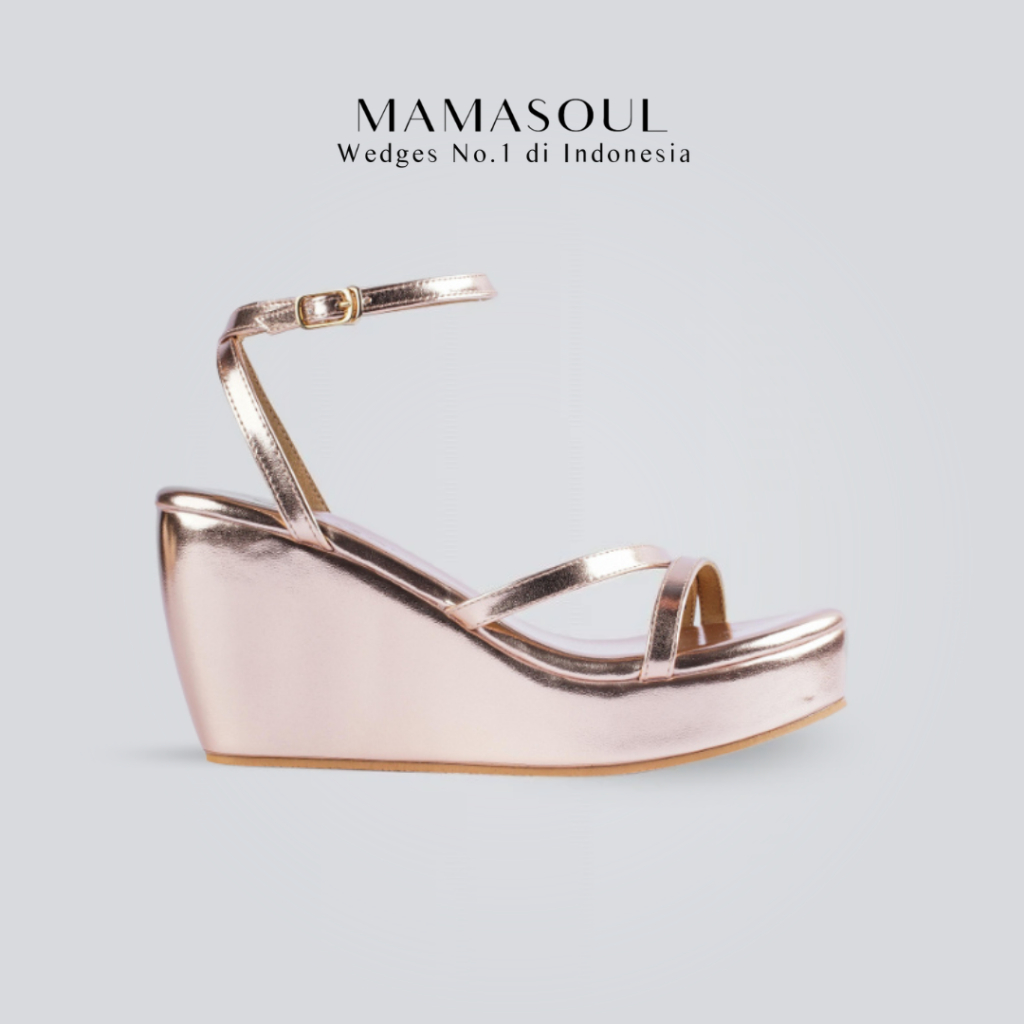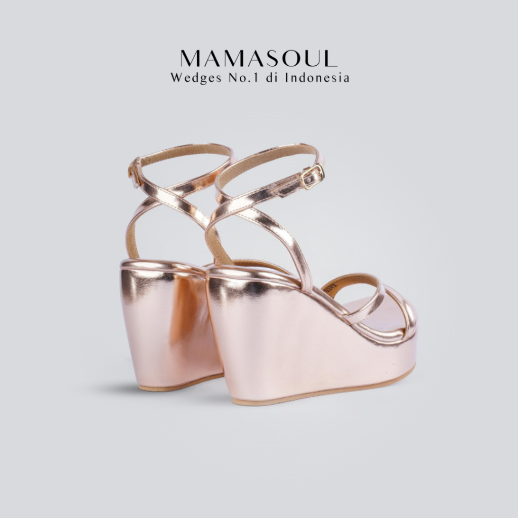 MAMASOUL - Kate Sandal Wedges Wanita Pesta Tali shiny gold Tinggi 9cm