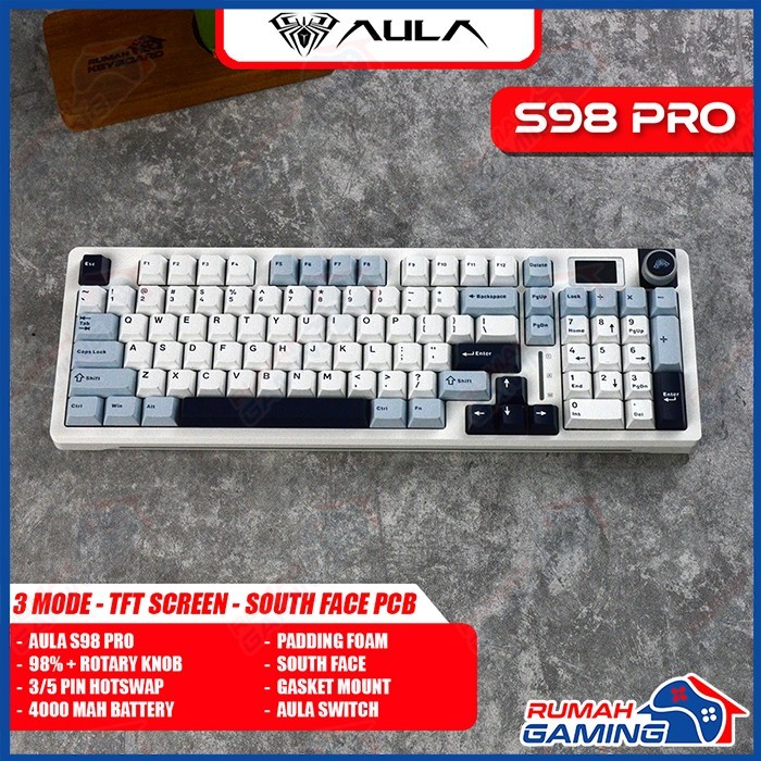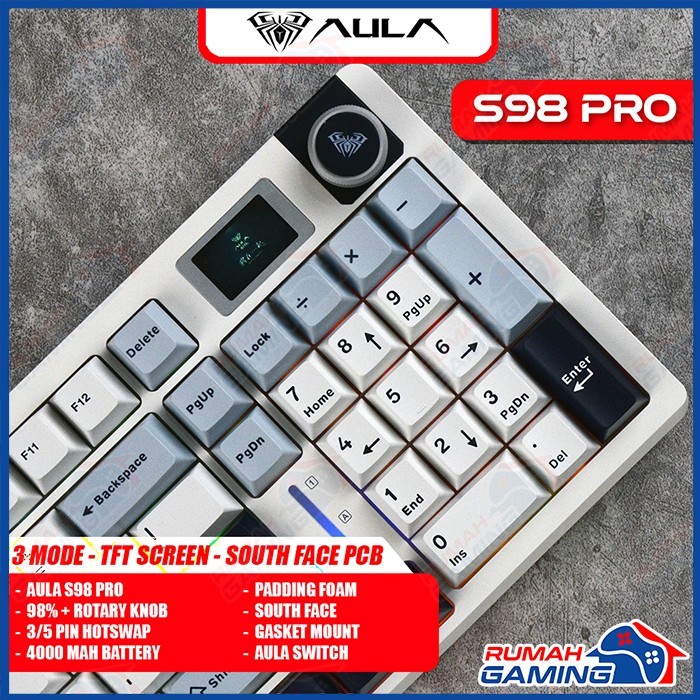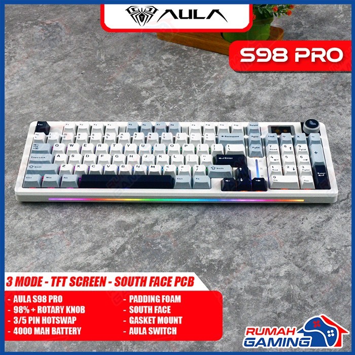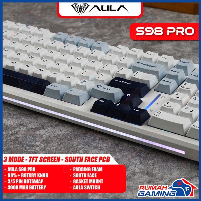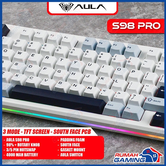 AULA S98 PRO - 98 PERSEN - 3 Mode - ket Mount - RGB - SIDE RGB - PBT Keycap - South Face - Mechanical Keyboard