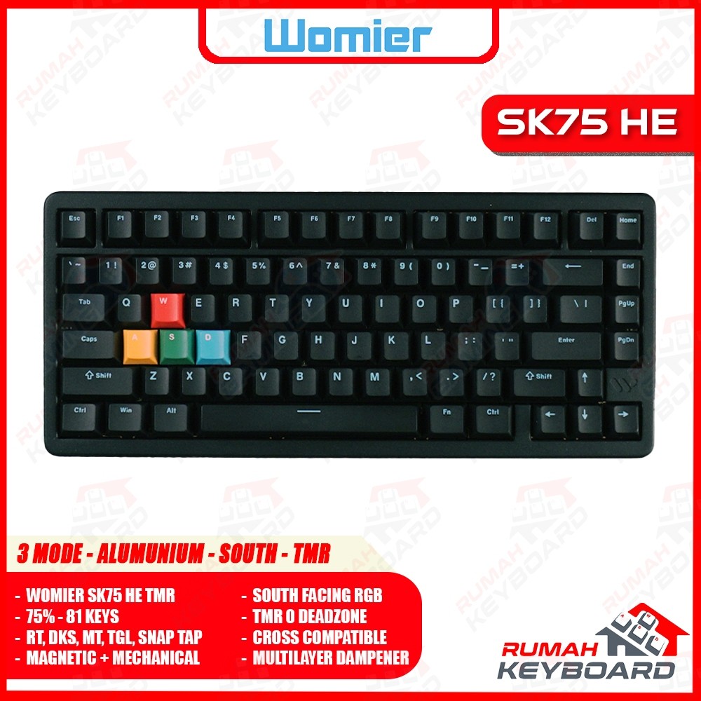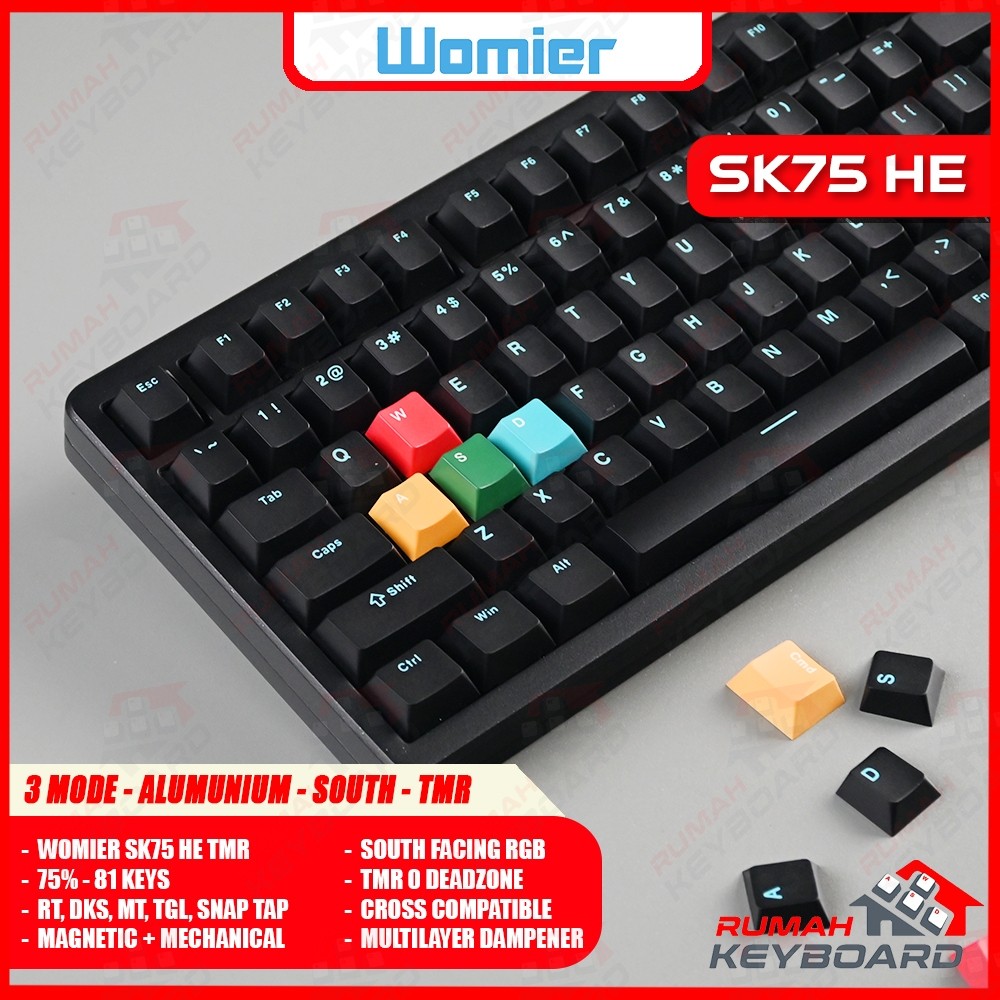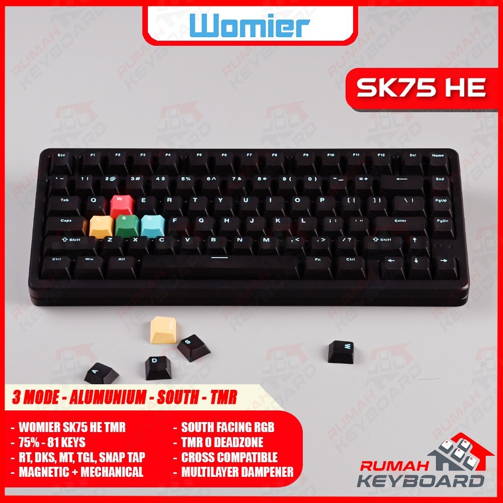 WOMIER SK75 HE TMR - 75 PERSEN - 8K - Alumunium - 3 Mode Connection - Magnetic Switch - Rd Trigger - Mechanical Keyboard