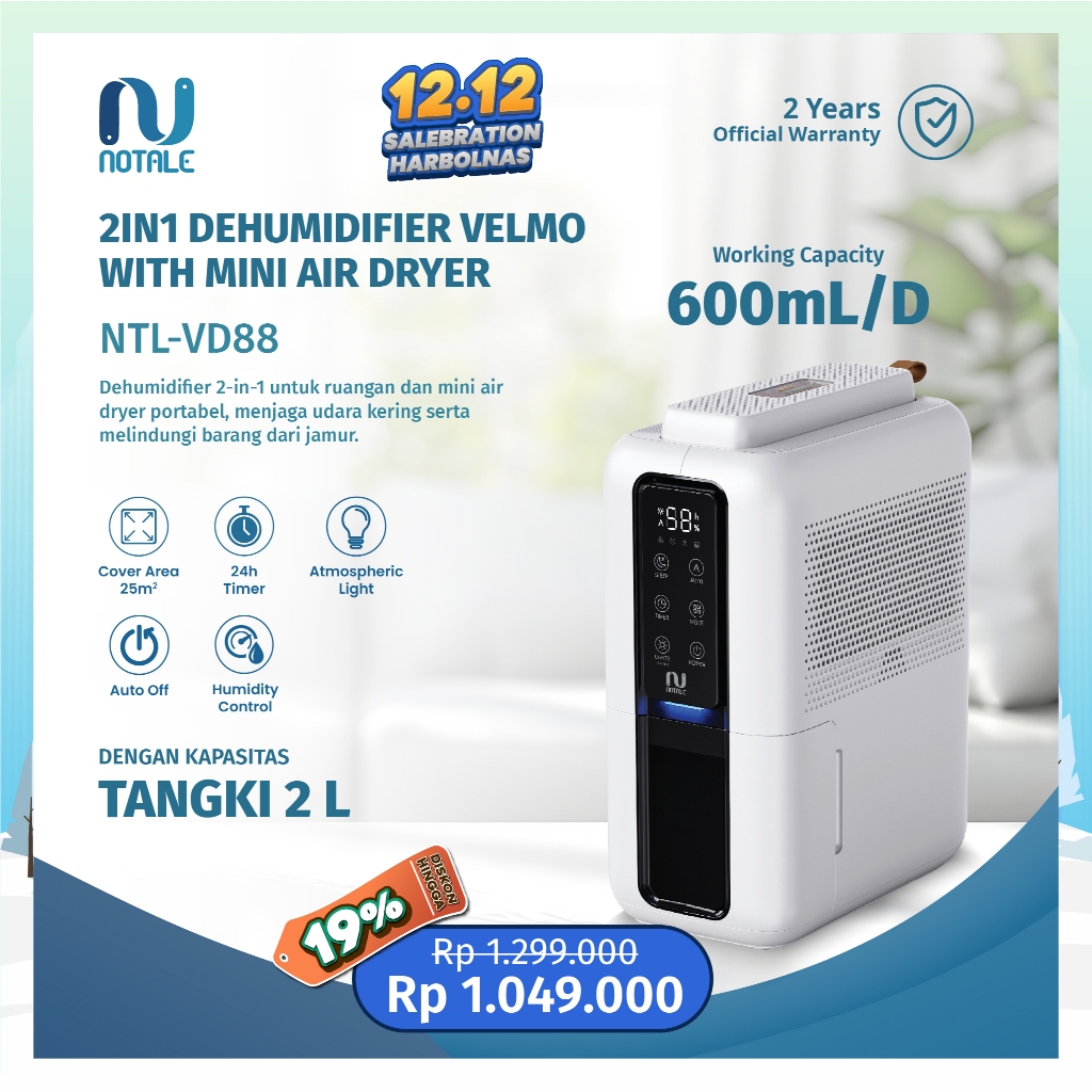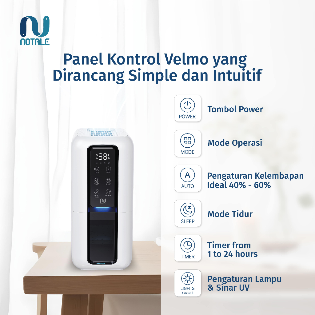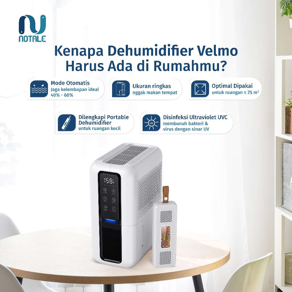 Notale Dehumidifier Velmo 2IN1 Penghilang Kelembaban & Penyaring Udara multifungsi