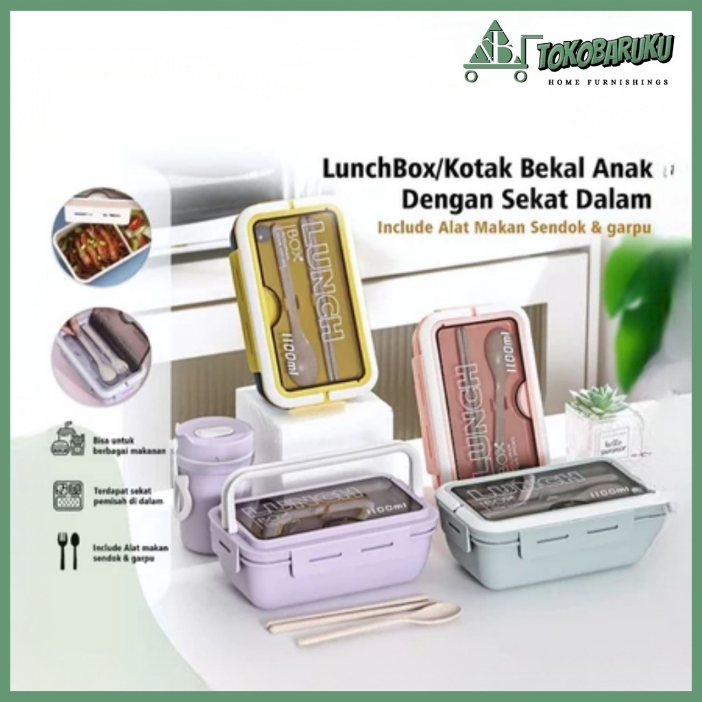 (KEYA) Lunch Box Set Kotak Bekal Makan Siang Free Sendok 1100ML Murah Gratis Ongkir