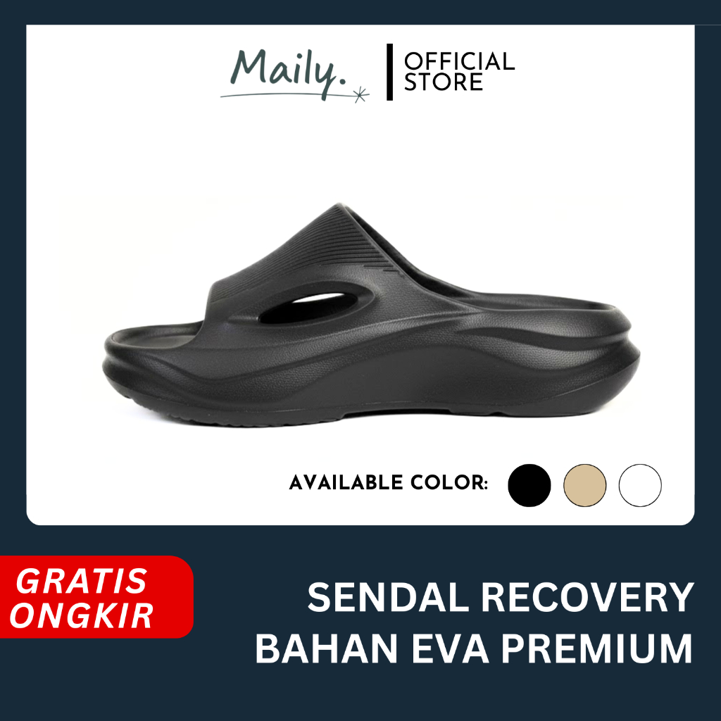 Sandal Recovery Pria Bahan Eva Karet Empuk Anti Bau Licin Sendal Slop Nyaman Sport Premium