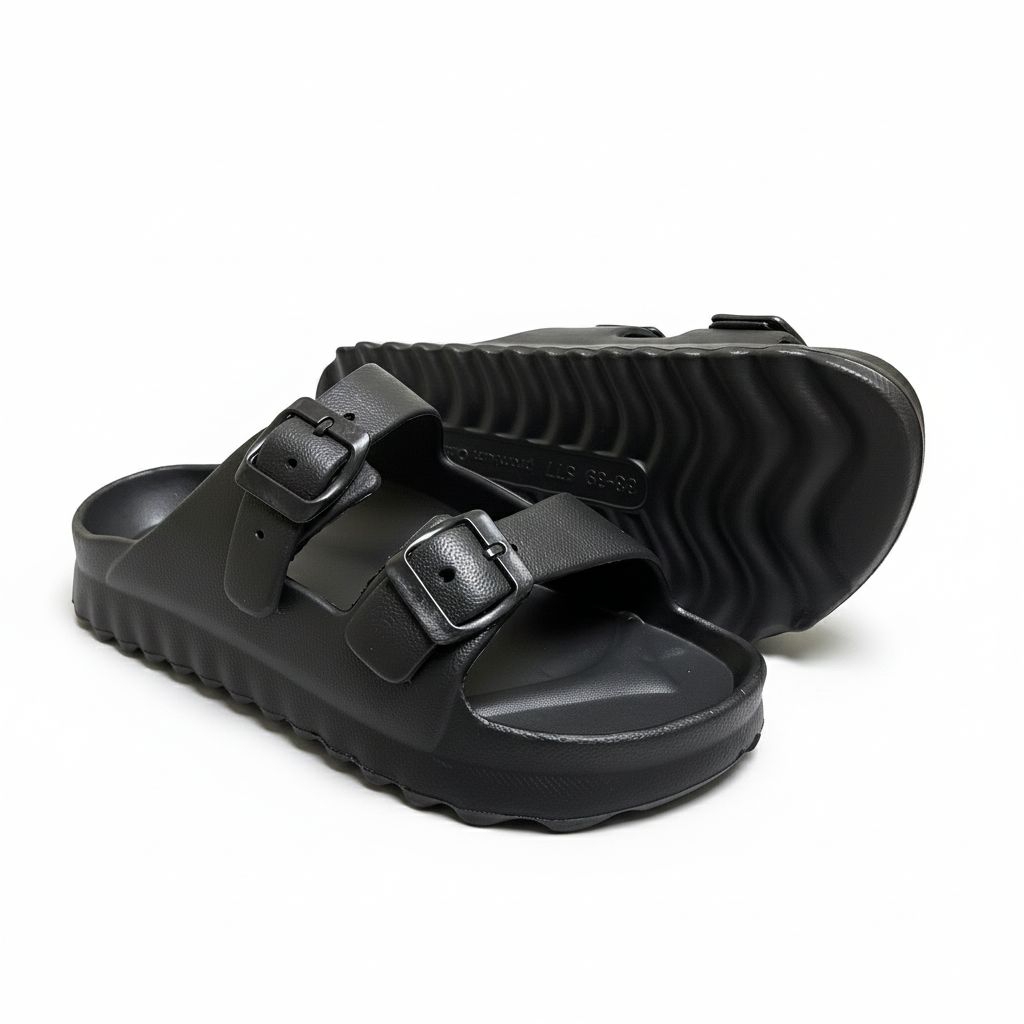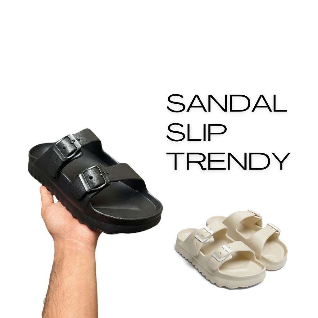 Sandal Slop Pria Wanita Terbaru Karet Sol Empuk Elastis Ringan Dipakai Anti Slip Model Kasual Trendi Dua Strap Murah Awe