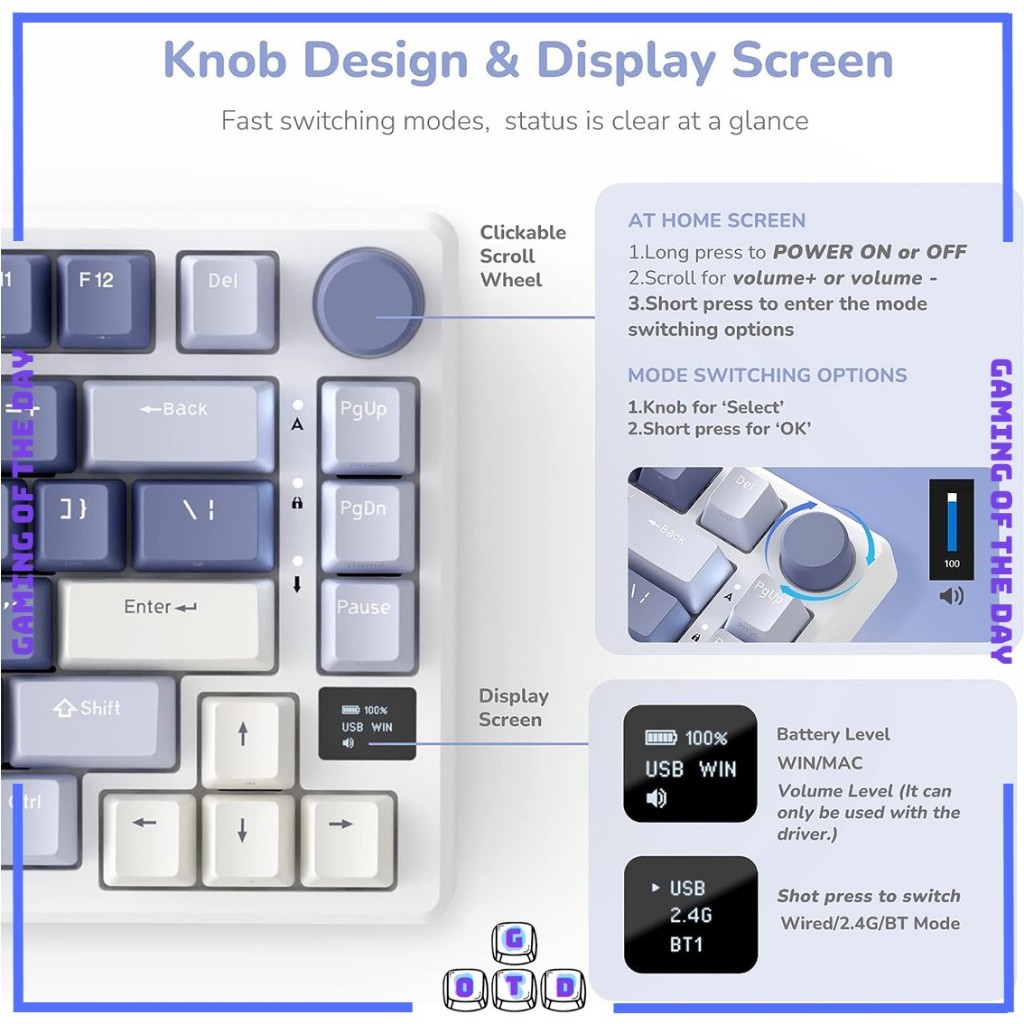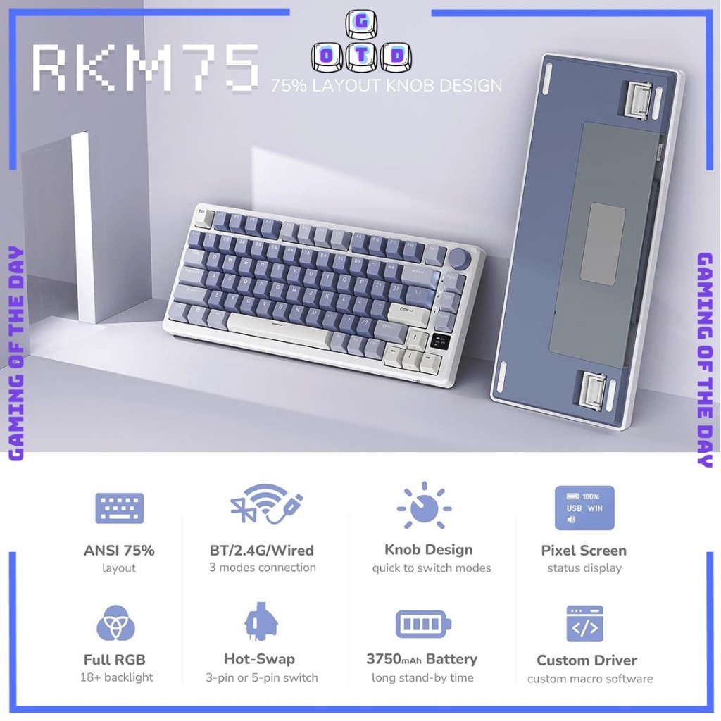 Royal Kludge RK M75 3-Mode ket LED Mechanical Keyboard Wireless