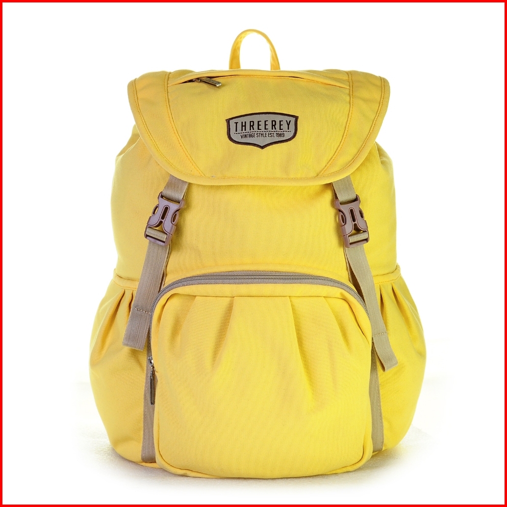 Threerey - Tas Ransel Serut Wanita - Tas Kanvas Backpack Sekolah Kuliah Water Repellent Roseline Ta20320