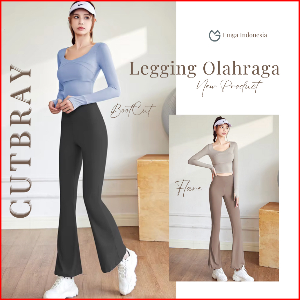 Legging Pilates Olahraga Cutbray Celana Panjang Bootcut Emga Lo1c Flare Wide Leg Highwaist Yoga Zumba Pilates Senam Aero