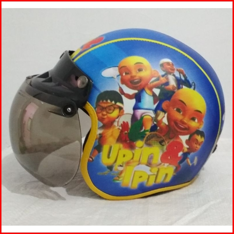 Helm Anak Bogo Anak Retro Usia 2 3 4 5 6 7 Karakter Motif Upin Ipin Free Kaca Cembung