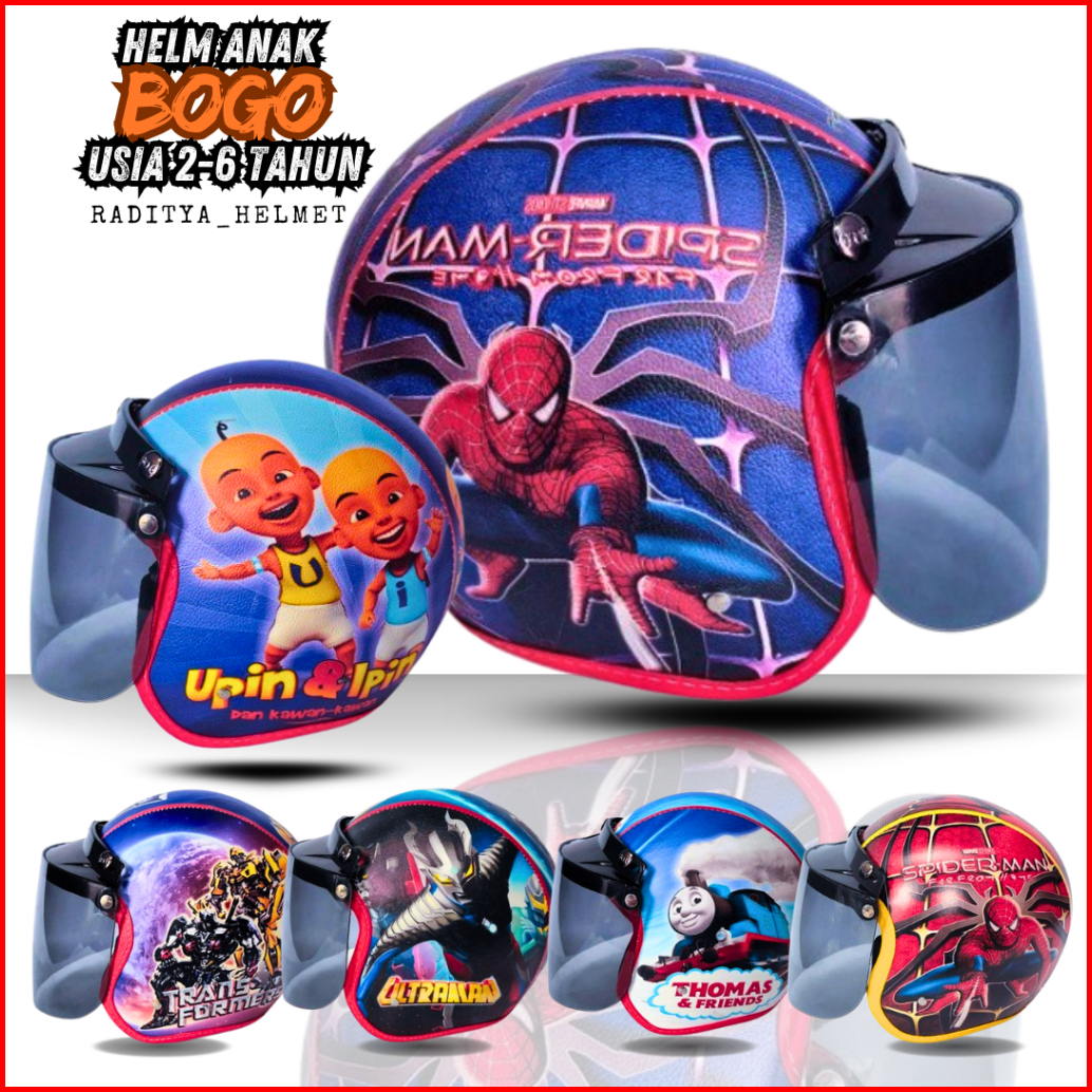 Helm Anak Retro Bogo Premium Usia 2 3 4 5 6 7 Tahun Full Kulit Free Visor Kaca Datar Perempuan