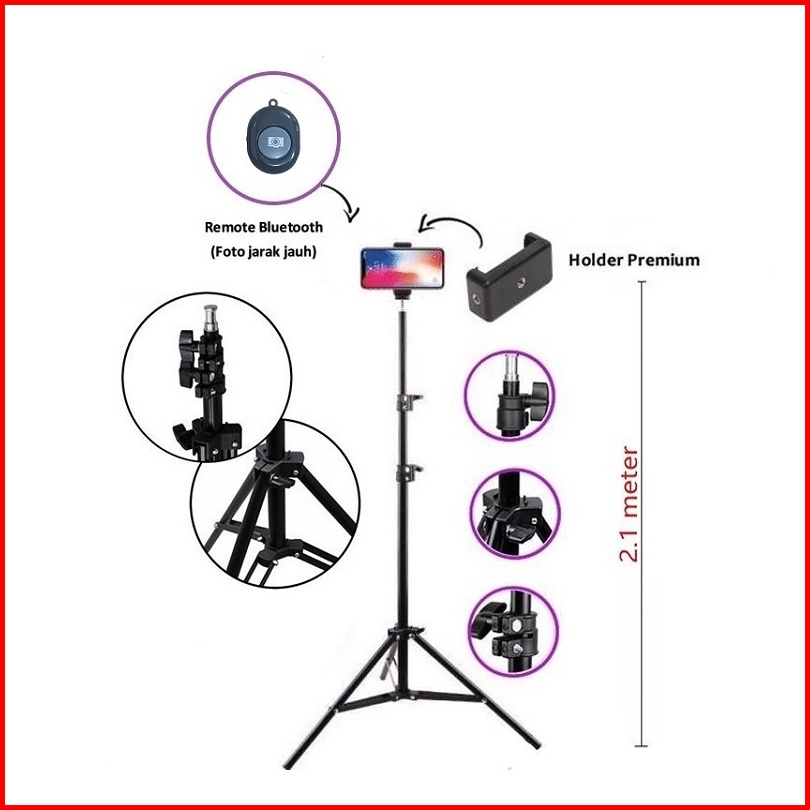 Paket Komplit Tripod 2.1m Mini Ball Head Ball Holder Premium Holder E Tomsis 1 Tombol