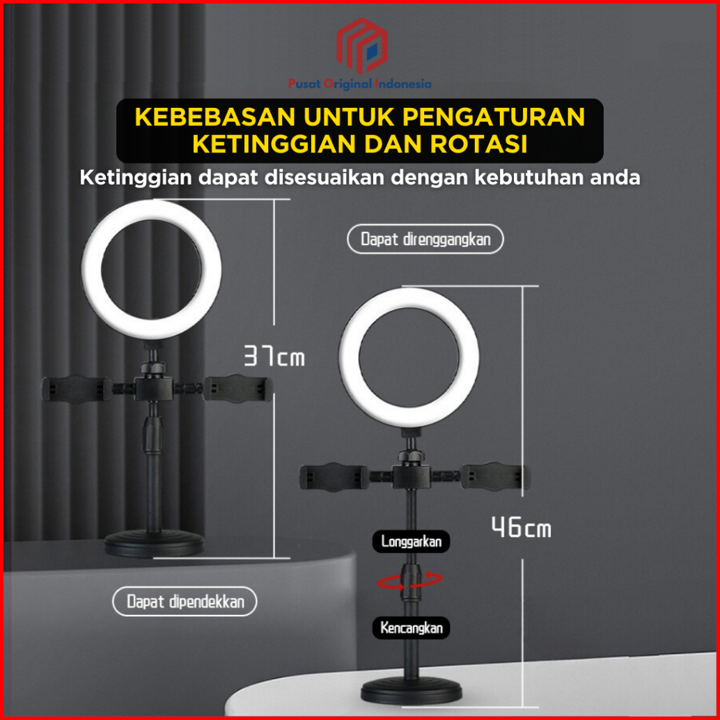 Poi Ring Light 16cm Tripod 2 Holder Lampu Led Selfie Vlog Stream Make Up Video