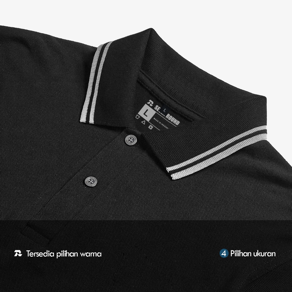 Sevenround - Poloshirt Kerah List Pria Wanita Baju Kerah Santai Unisex Hitam M L Xl Xxl