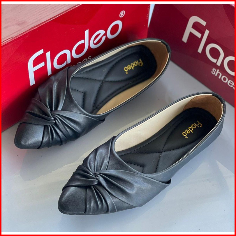 Fladeo Flat Shoes Wanita Sepatu Flat Kerja Hitam Model Q02