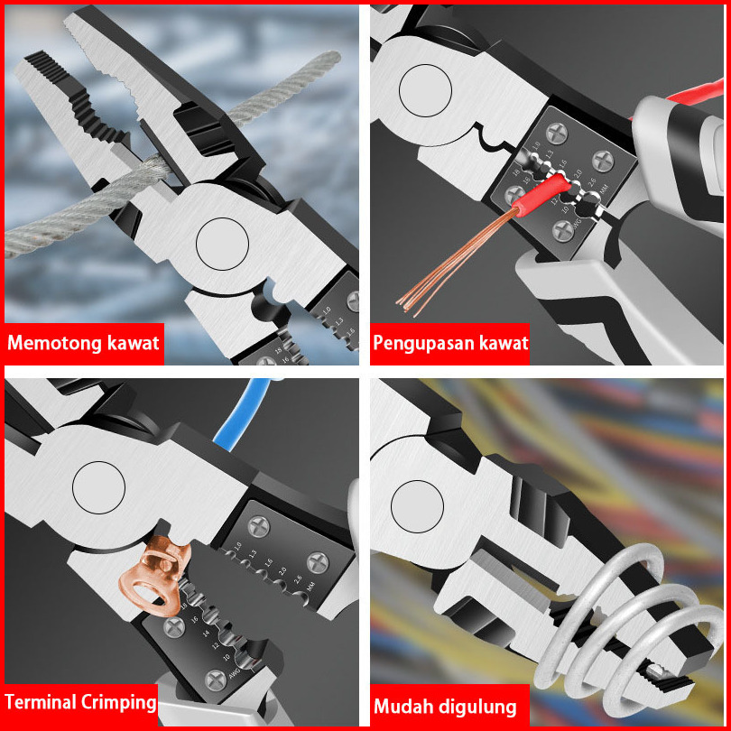 Tang Multifungsi Lancip Potong Wire Cutter Tang Pemotong 9 In 1 Tang Kombinasi Multifungsi Pvc Handle