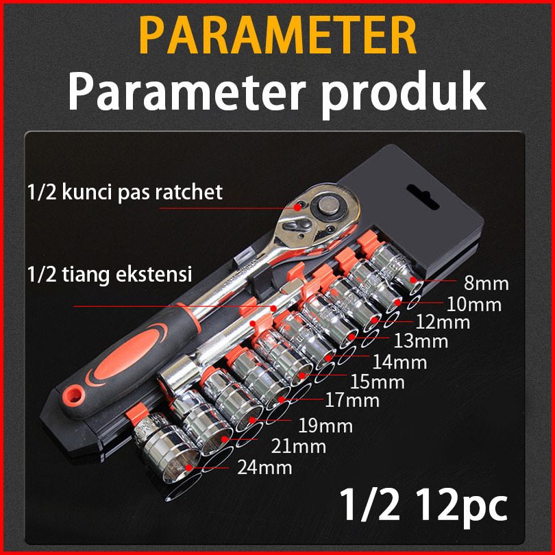 8-24mm Kunci Set Socket 12pcs 1 2 In Kunci Sok Wrench Rachet Alat Perkakas Lengkap Motor Rachet Handle Multifungsi Kunci