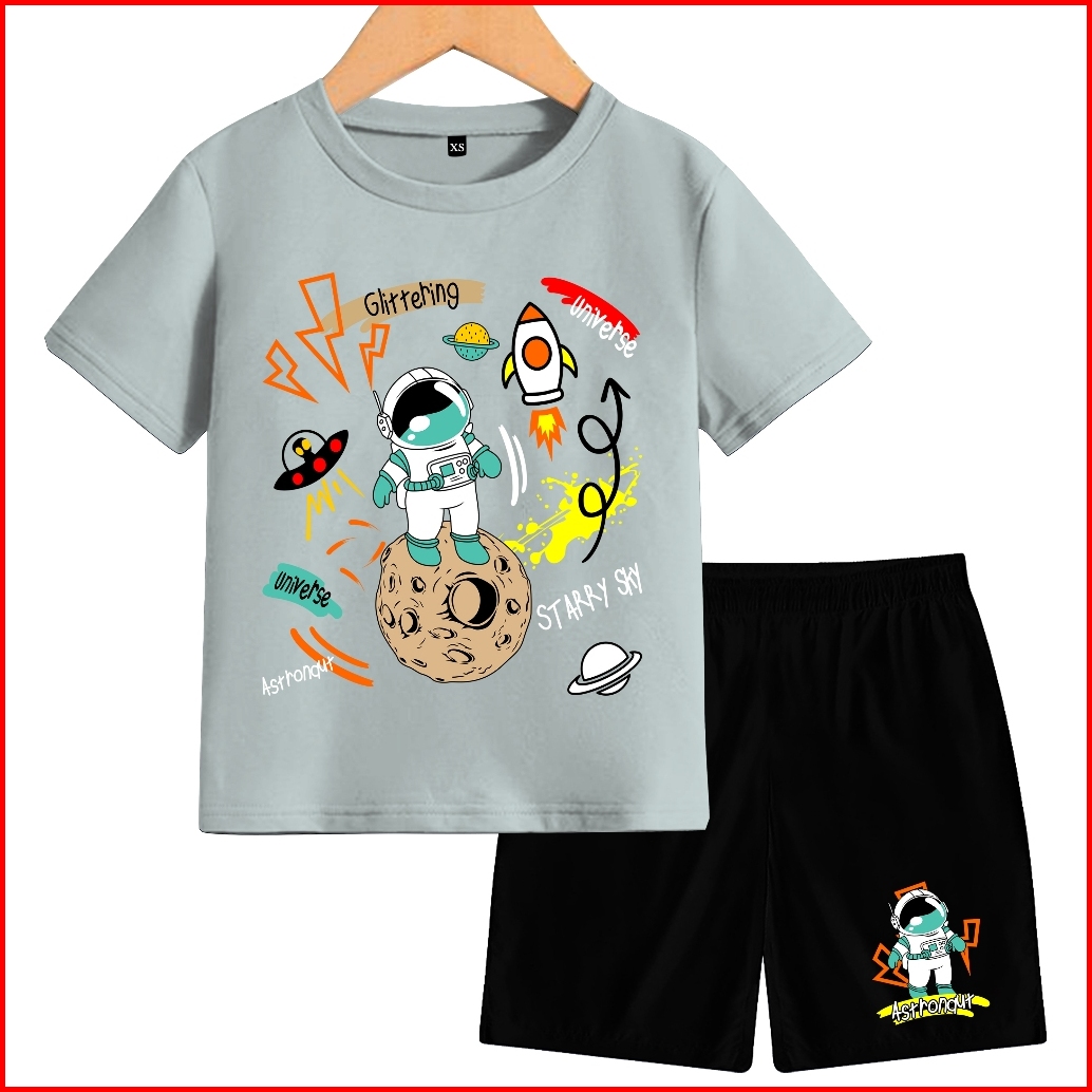 Setelan Anak Anak Motif Astronot Lengan Pendek Celana Pendek