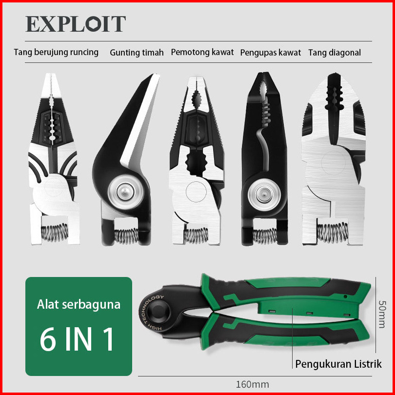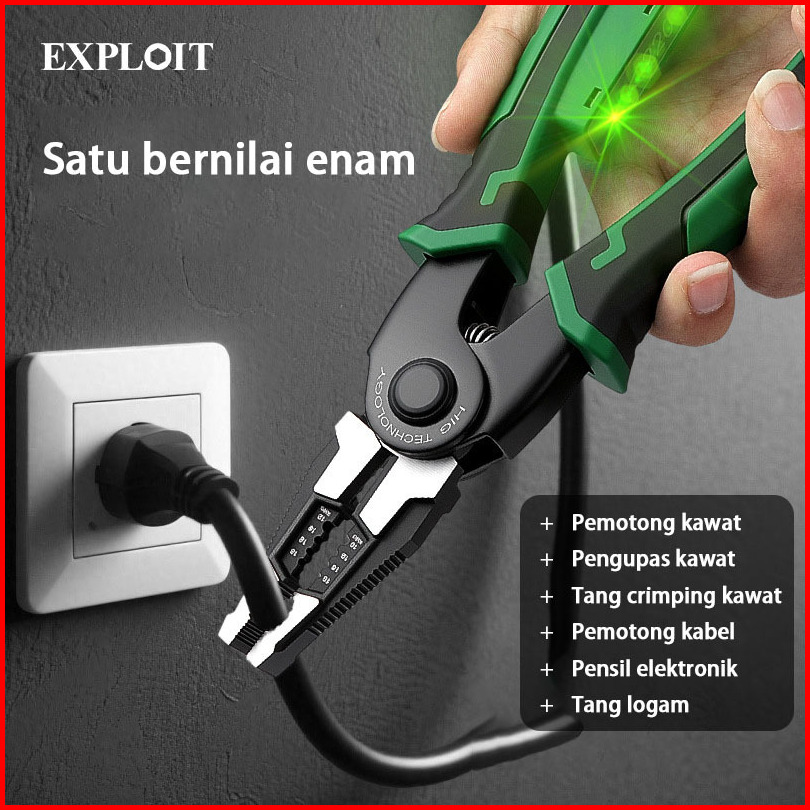 Tang Multifungsi 6 In 1 Tang Kombinasi Jepit Potong Seng Crimping Kupas Kabel All In One Tang Multifungsi Set Tang Set