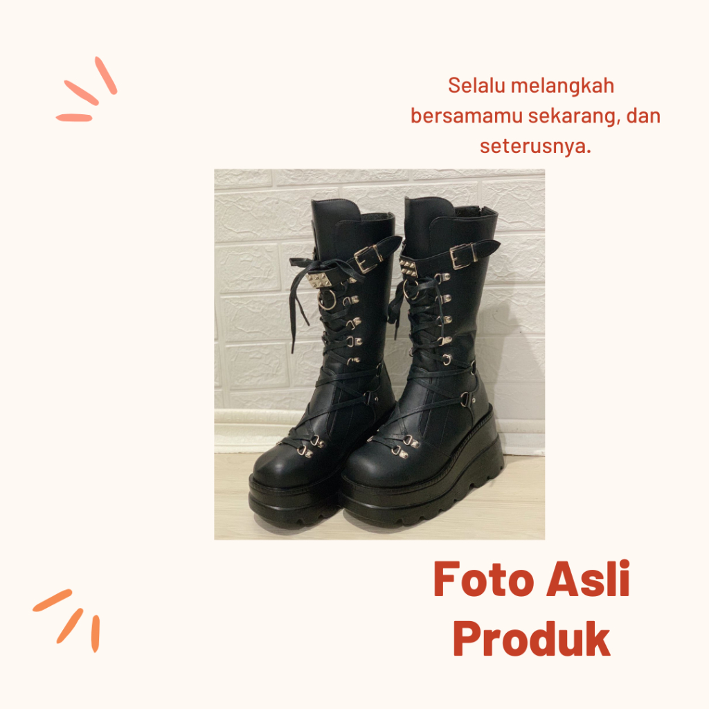 Sepatu Boots chunky Panjang Wanita Hak Tinggi Fashion 291 onlinemall